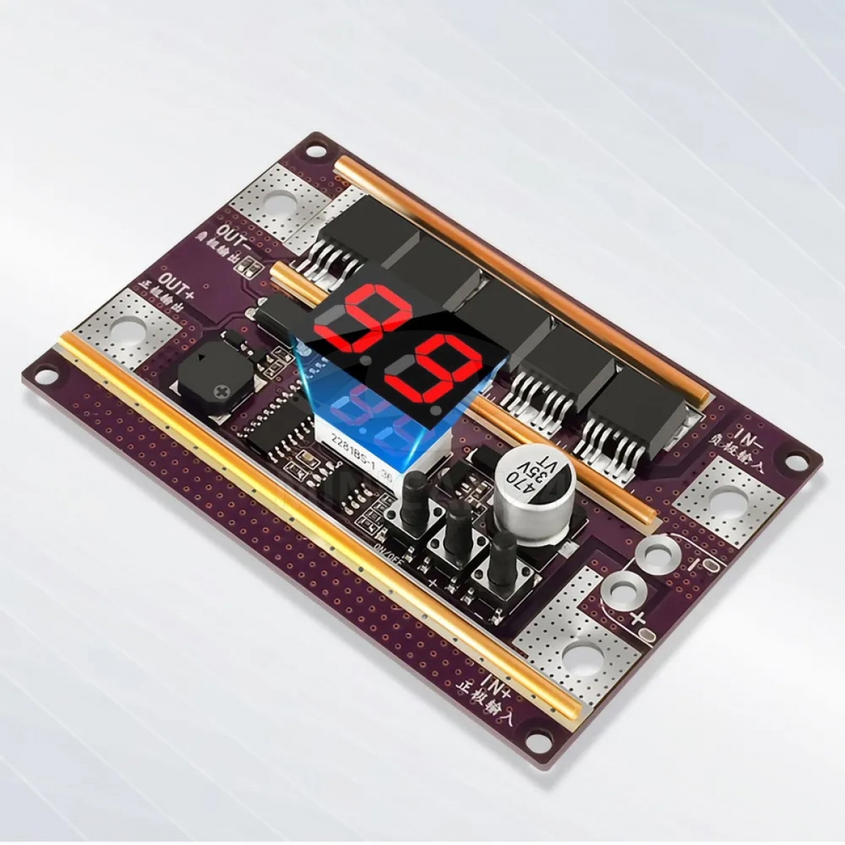 Инструкция: Минус источника питания на IN-, плюс на IN+. К OUT- подключить минусовой сварочный электрод. OUT+ подключить плюсовой сварочный электрод. Ошибка подключения не допускается, выводит из строя управляющую оптопару. Входной ток не должен быть более 20Ам. Напряжение не более 40в.